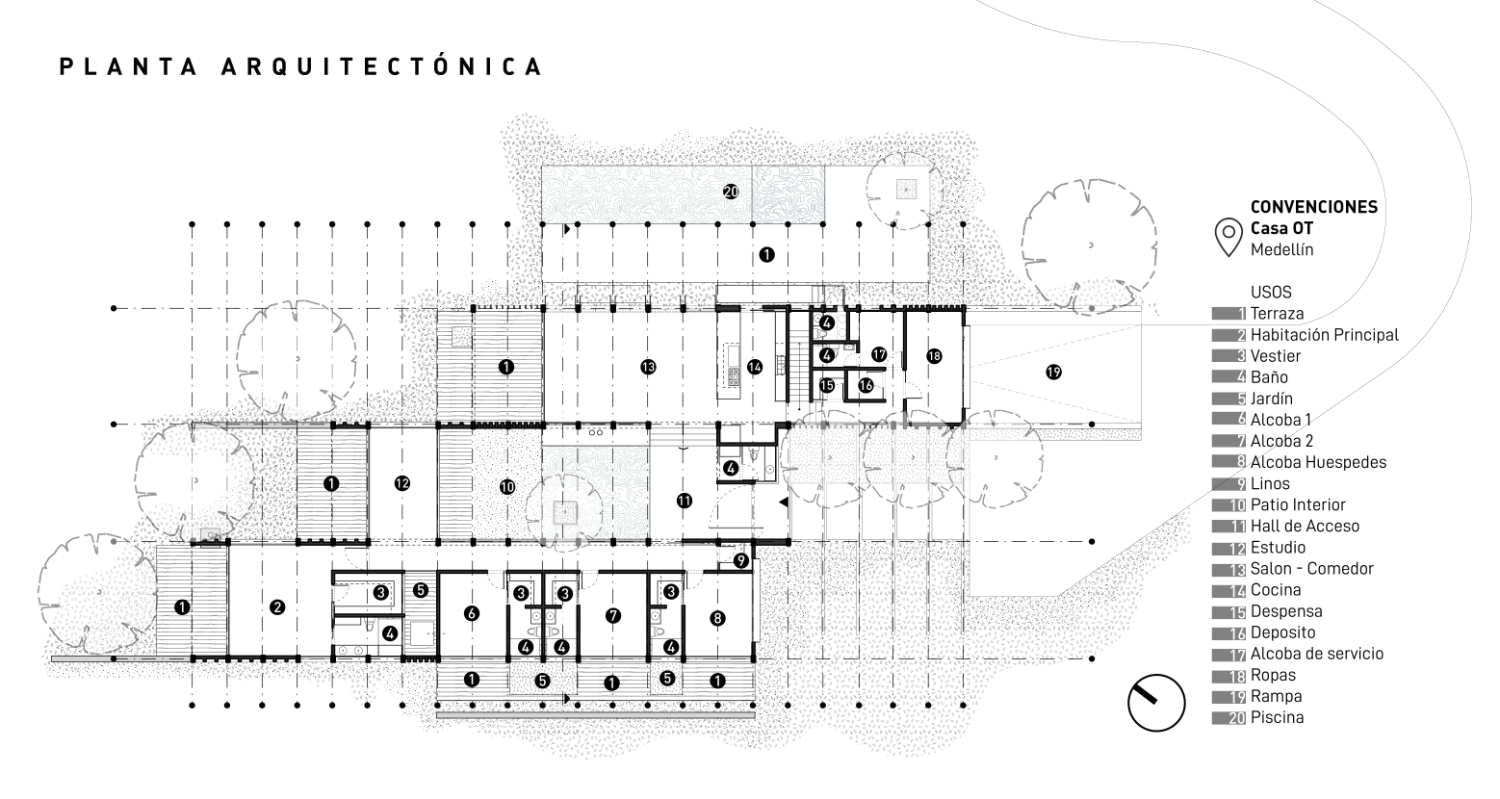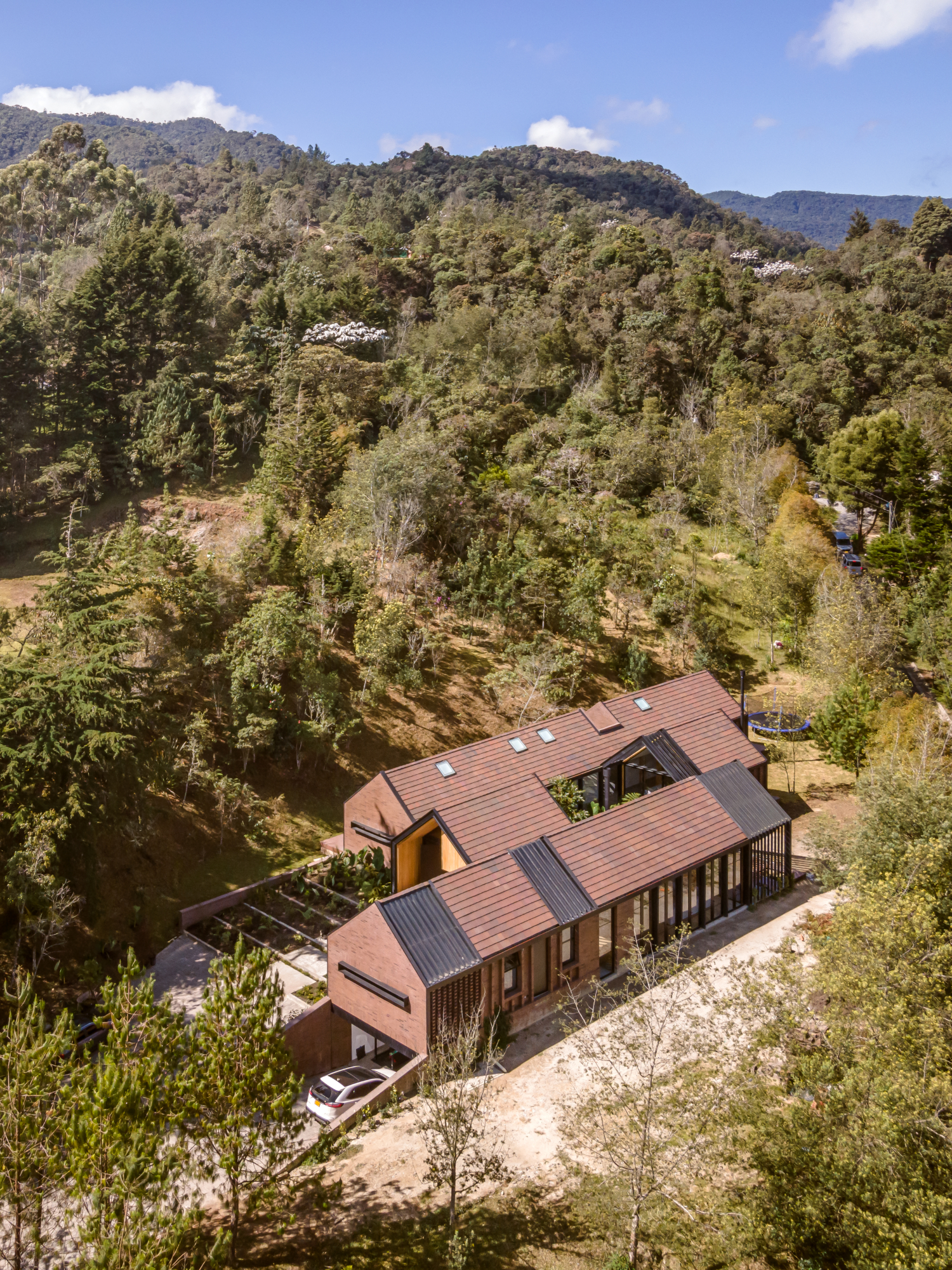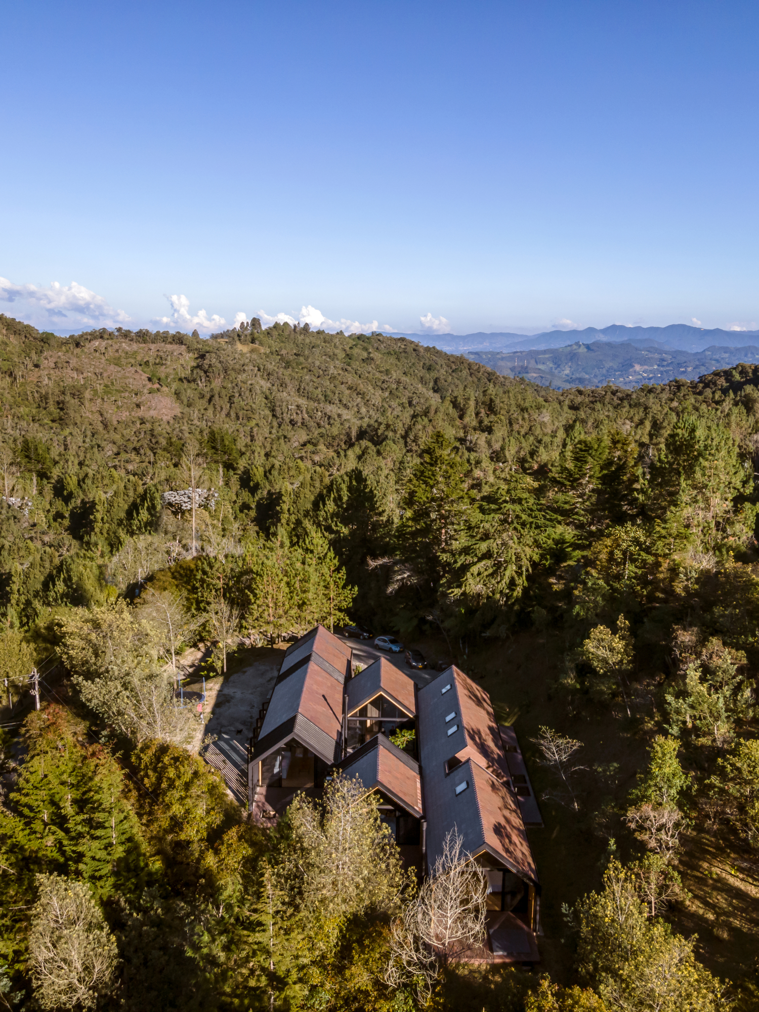 Ubicada en El Retiro, Antioquia, la Casa OT se emplaza en la parte baja de un terreno en pendiente, rodeado de vegetación nativa y coronado por un pequeño bosque en la zona alta. Este entorno privilegiado, cargado de atmósfera y vistas, fue el punto de partida para concebir una vivienda que dialogara de forma respetuosa y poética con el paisaje. La arquitectura no se impone: se adapta, se abre sobre el terreno, siguiendo sus líneas naturales y potenciando la relación visual y emocional con el lugar.