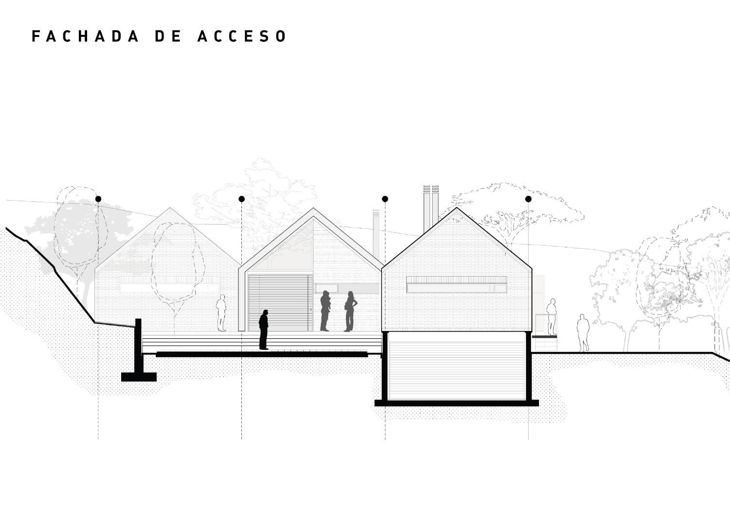 El encargo de la familia propietaria fue claro: buscaban un hogar, que recogiera la forma arquetípica del techo a dos aguas —símbolo arraigado de la vivienda tradicional—, pero desde un lenguaje arquitectónico contemporáneo, sobrio y duradero. La intención no era replicar la tradición, sino reinterpretarla desde la esencialidad, buscando una estética atemporal que estableciera puentes entre la memoria colectiva y las necesidades del habitar actual.
