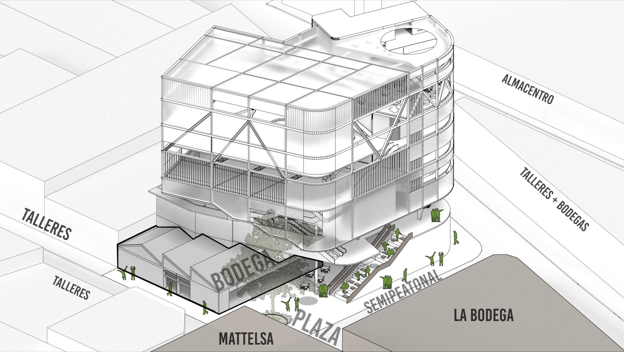 Un proyecto que la valora la vocación automotriz tradicional del barrio Perpetuo Socorro y propone una evolución creativa de esta vocación, en una edificación que promueve lo público y comunitario, a partir de una circulación continua y unas plazas cubiertas como extensiones del espacio público.